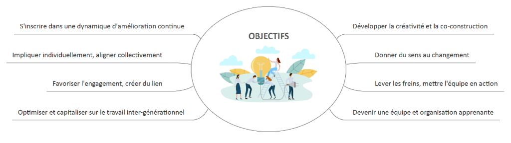 Nos formations questionnent vos modes de fonctionnements pour trouver les moyens, les leviers pour répondre à ces enjeux, développer le partage et l’enrichissement des compétences en interne, engager les équipes vers l’atteinte de vos objectifs, s’inscrire dans une démarche d’amélioration continue.